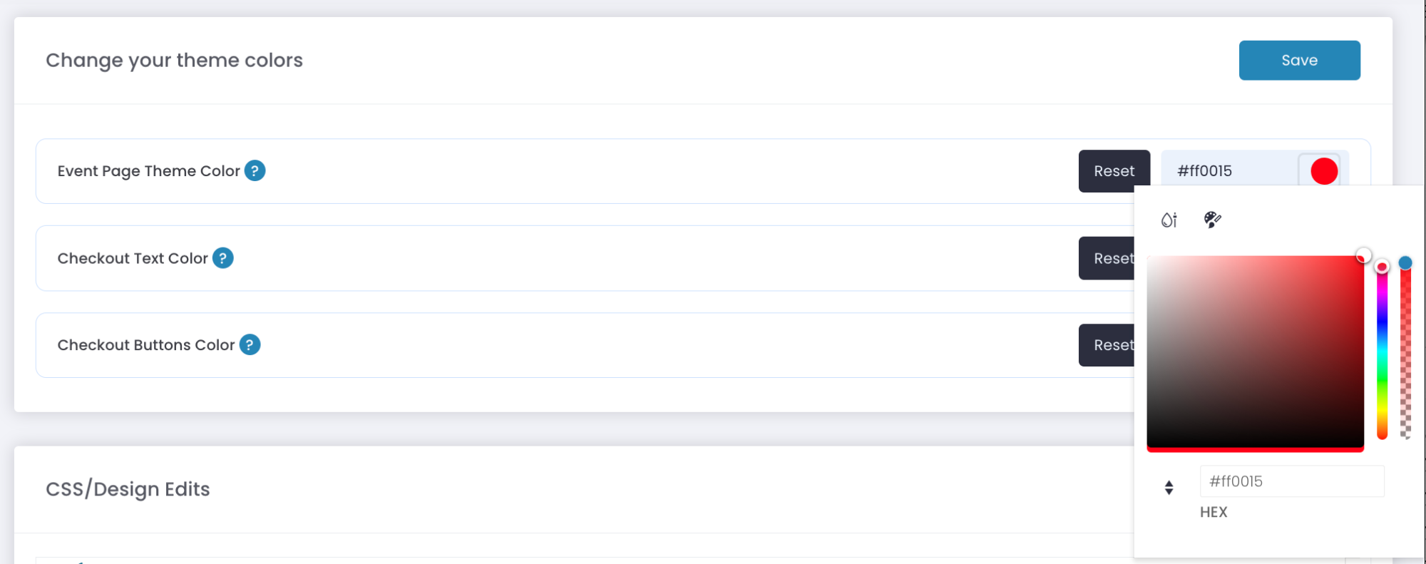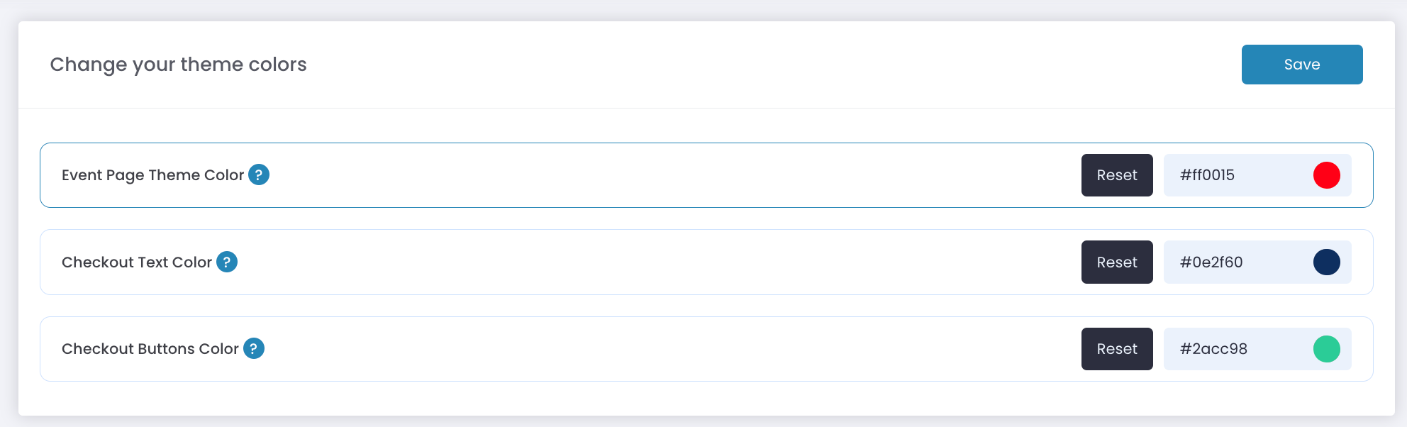 Note: You can also customize the checkout text color and the Checkout Now button. These changes apply to all events on your account.